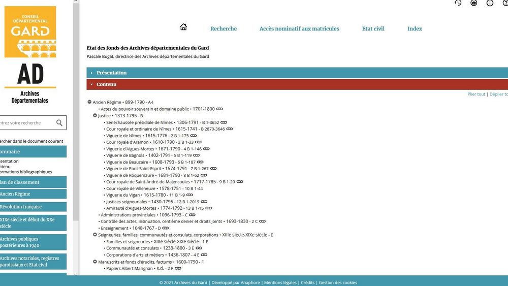Vous pouvez retrouver dans les trois rubriques disponibles ici les fonds numérisés en ligne des Archives départementales du Gard :