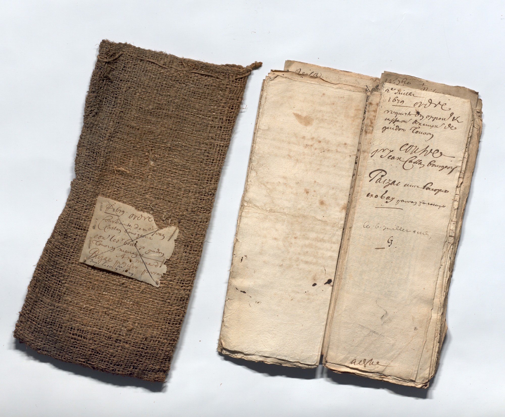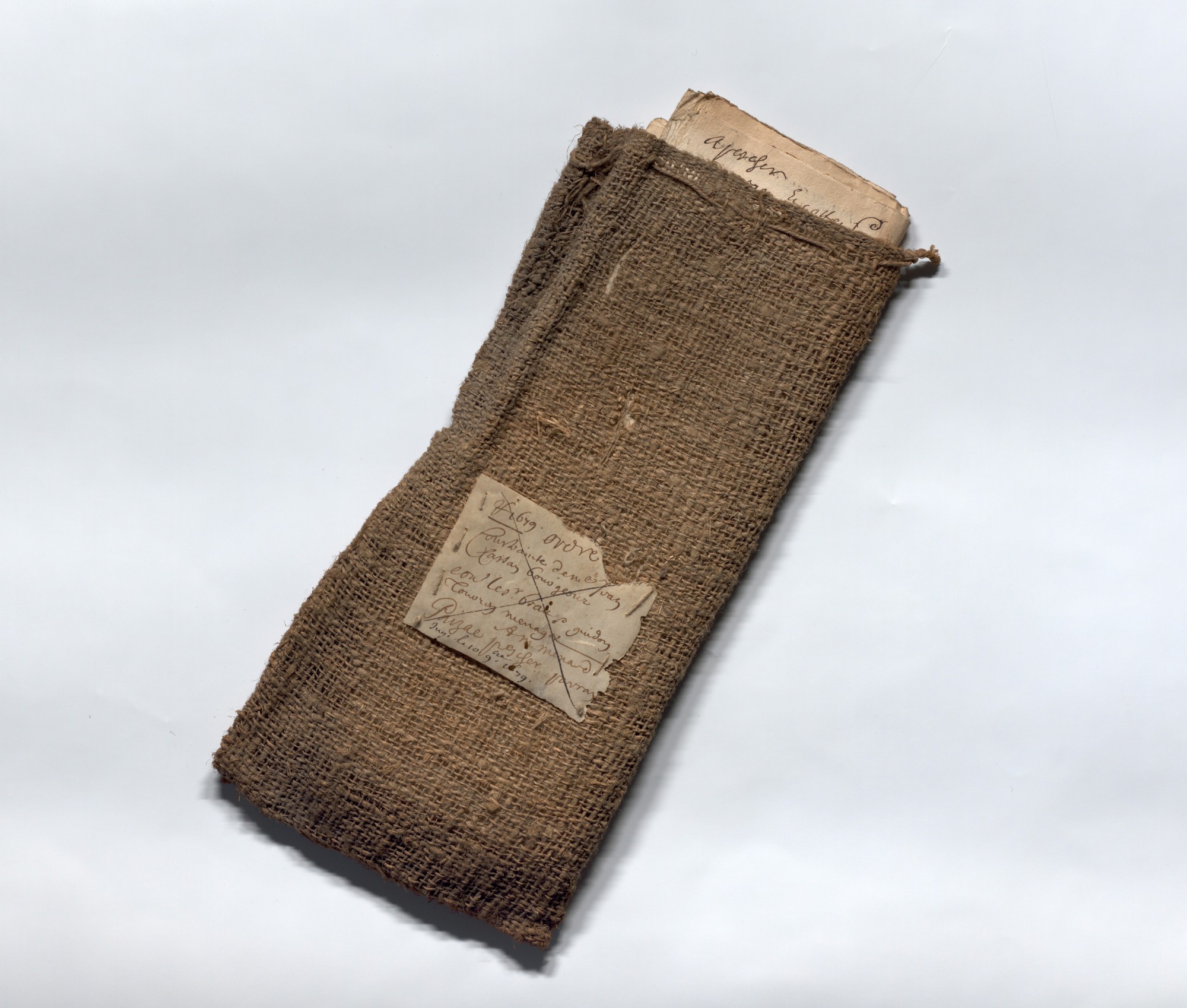 Aujourd’hui, la boîte aux normes archivistiques tend heureusement à remplacer le sac de chanvre, mais ces contenants ont été conservés pour mémoire. (Arch. Dép. du Gard : série B)