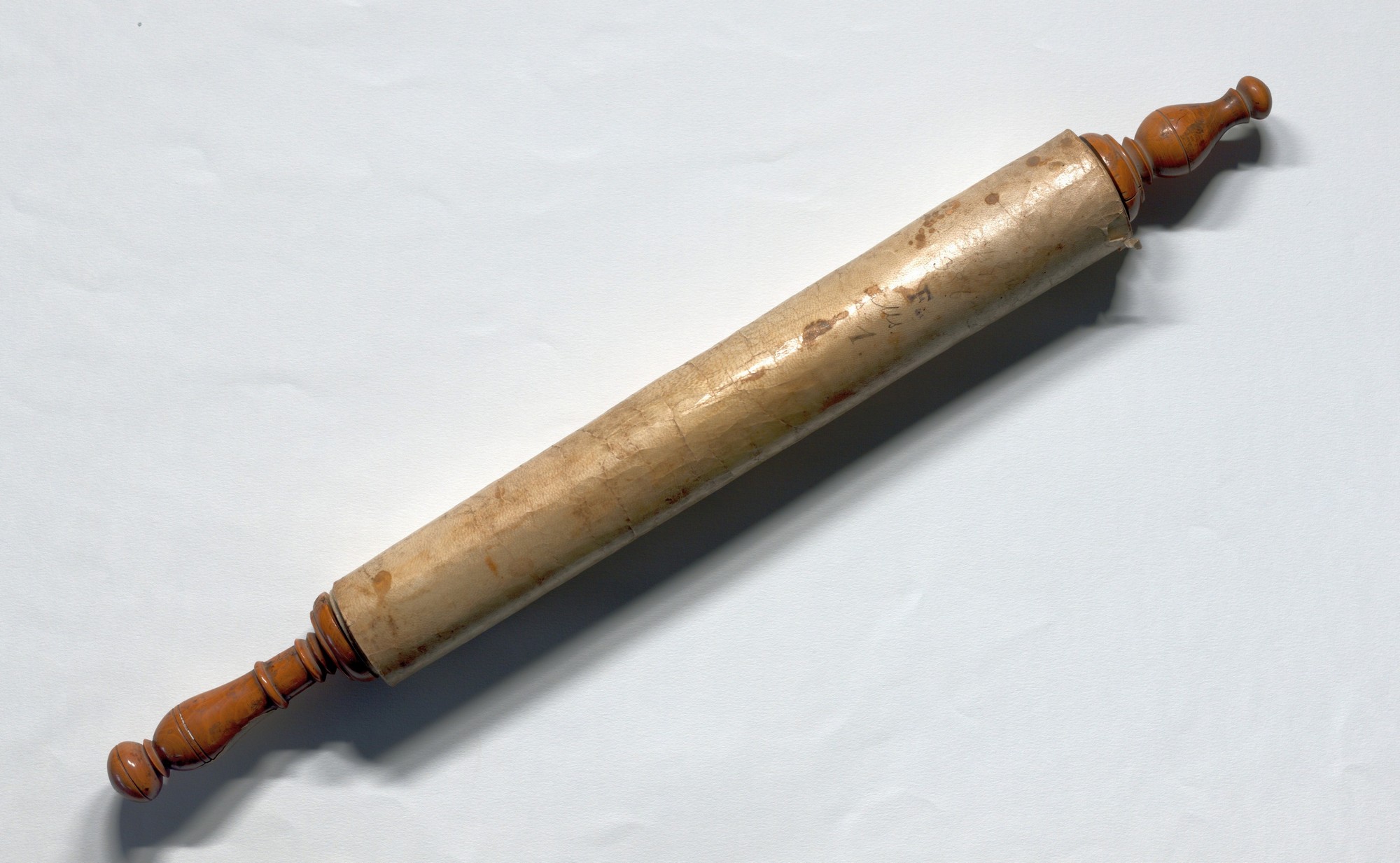 Rouleau de parchemin (2,545 m de long sur 35,8 cm de large) contenant un extrait de la Bible, le Livre d’Esther, en hébreu, traditionnellement lu lors de la fête juive des Pourim (dernière pleine lune de l’hiver).