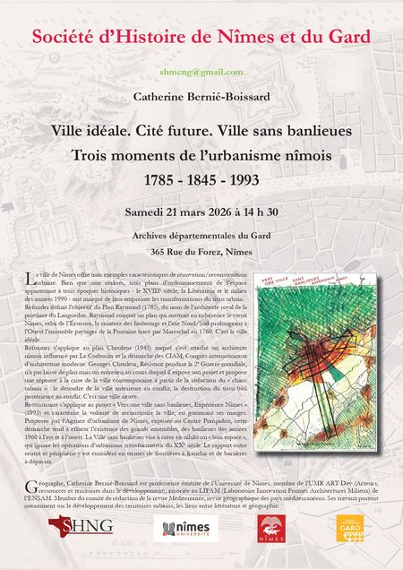 Conférence : "Ville idéale. Cité future. Ville sans banlieue. Trois moments de l'urbanisme nîmois (1785, 1945, 1993)" par Catherine Bernié-Boissard