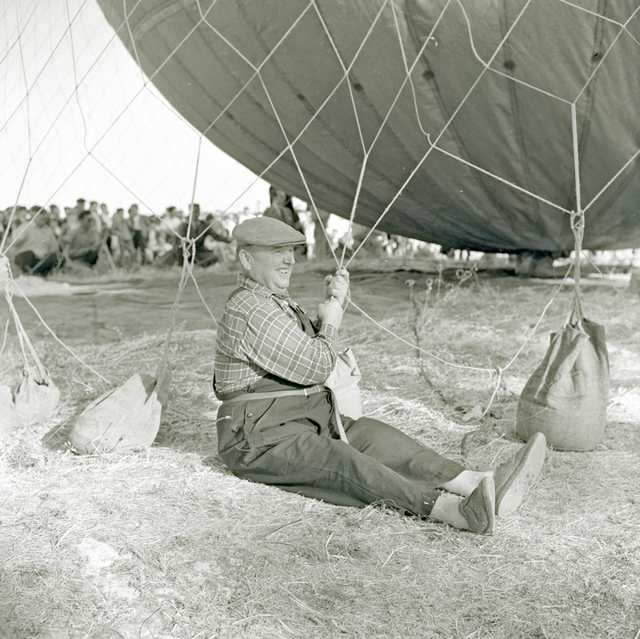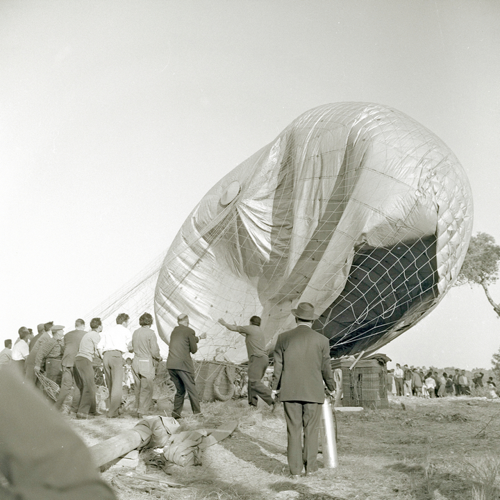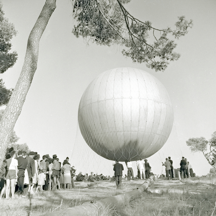 Arrêtons-nous ce mois-ci sur le populaire et émérite aéronaute Charles Dollfus, qui compta près de 670 ascensions en ballon, et dont la trace d’un vol, effectué autour des années 1960, vous est présenté au travers du fonds du photographe Jean Ribière. Avec sa femme, ce photojournaliste créé une agence de renom, aujourd’hui une partie de sa production comprenant des négatifs noir et blanc et couleur et des tirages photographiques a été versée et est conservée aux Archives départementales du Gard dans la sous série 18 Fi.