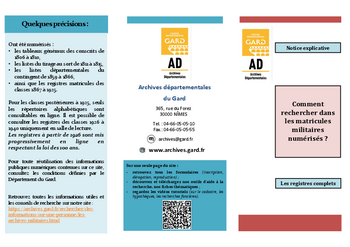 Les Archives départementales du Gard conservent les registres matricules des deux bureaux de recrutement de Nîmes et Pont-Saint-Esprit, couvrant la totalité du département du Gard mais aussi, à partir de la classe 1872, une partie de l'Ardèche : l'arrondissement de Largentière et les cantons de Bourg-Saint-Andéol, Villeneuve-de-Berg et Viviers (NB : il s'agit des cantons de l'époque, et non de ceux issus de la réforme de 2014).