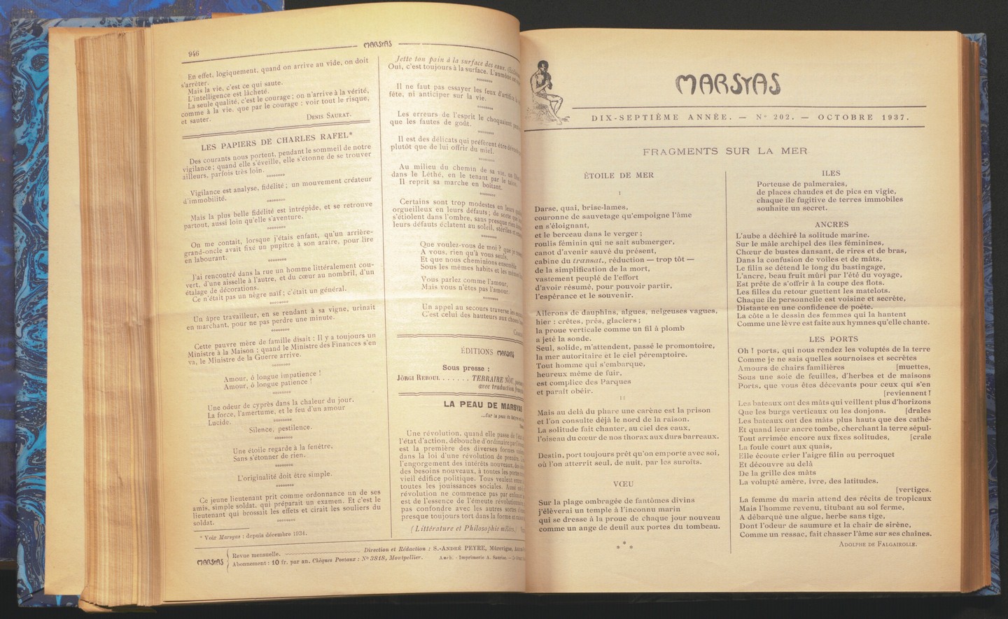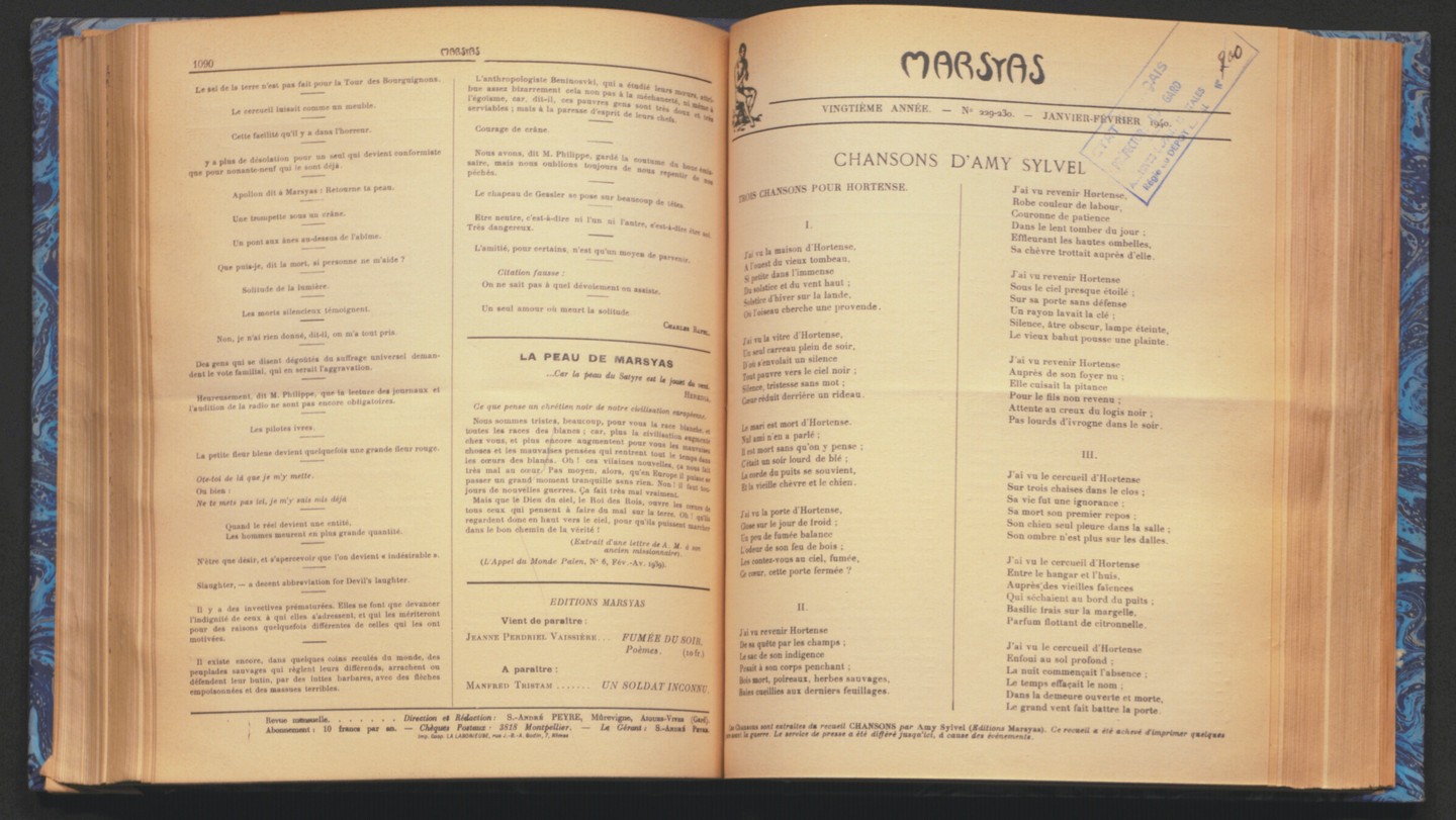 Avec "Marsyas", il est temps de se plonger dans la belle écriture. Dirigée par Sully-André Peyre, cette revue littéraire française célèbre la poésie et la prose. Elle se démarque par son engagement à promouvoir des voix contemporaines et des auteurs émergents, offrant un espace unique pour la création littéraire. Cette revue multiculturelle, donne grâce à ses fondateurs, une position dominante à trois langues : l’anglais, le français, le provençal mais aussi aux autres dialectes de la langue d’oc.