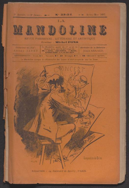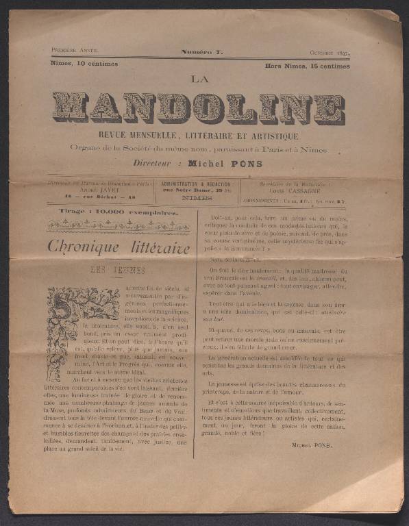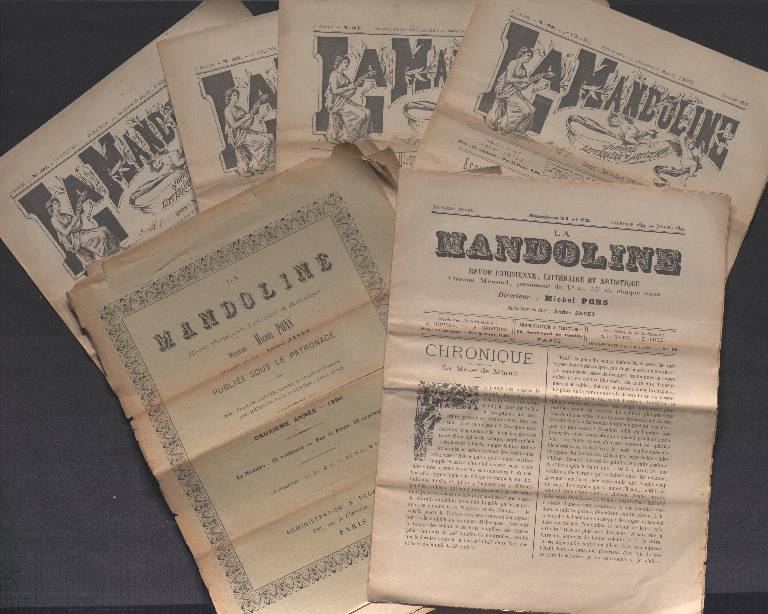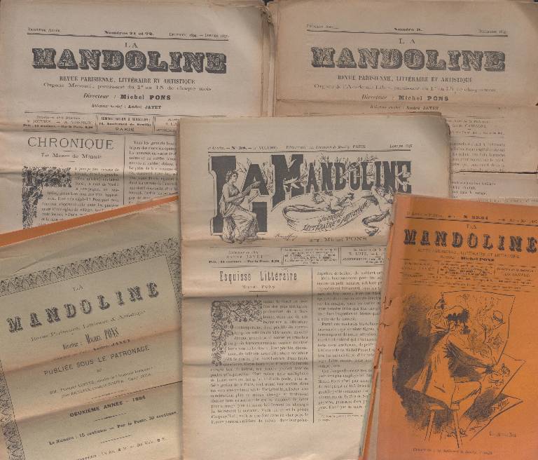 Editée à Nîmes pour les premiers mois de parution, "La Mandoline" s’expatrie à Paris en novembre 1893. Elle a pour but de "mettre en lumière les jeunes et les inconnus qui ont les qualités nécessaires pour se frayer un chemin dans les lettres".