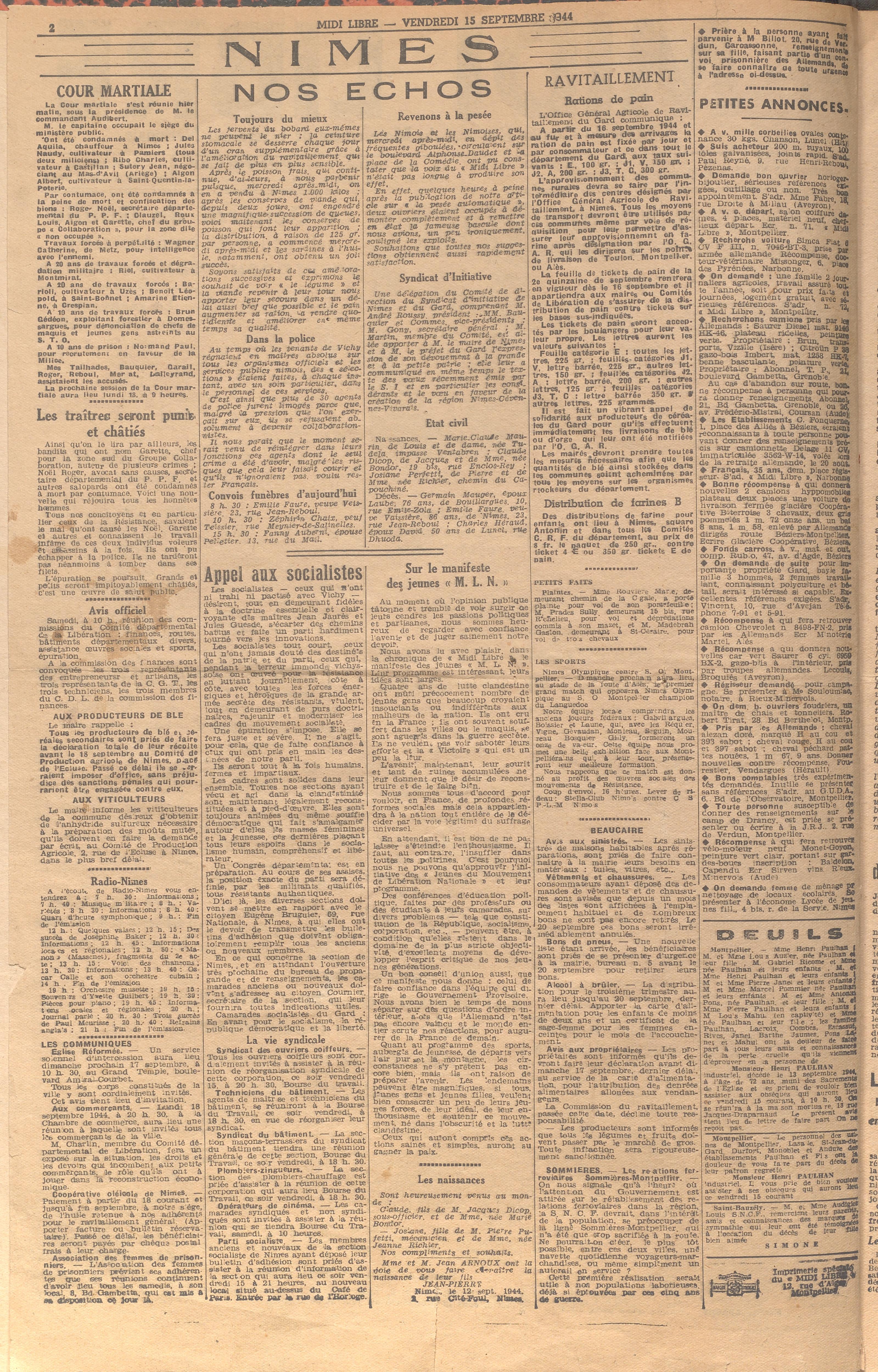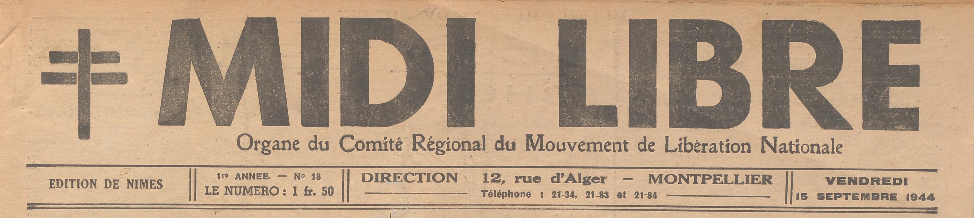 Publié pour la première fois le 27 août 1944, lors de la libération de Montpellier, il est alors 'l’organe du comité régional du Mouvement de Libération Nationale (MLN)".