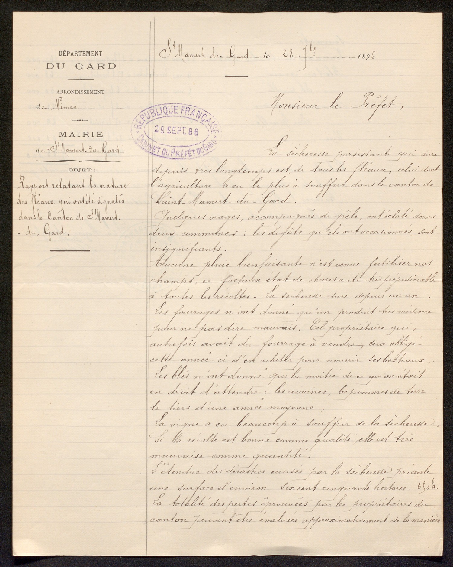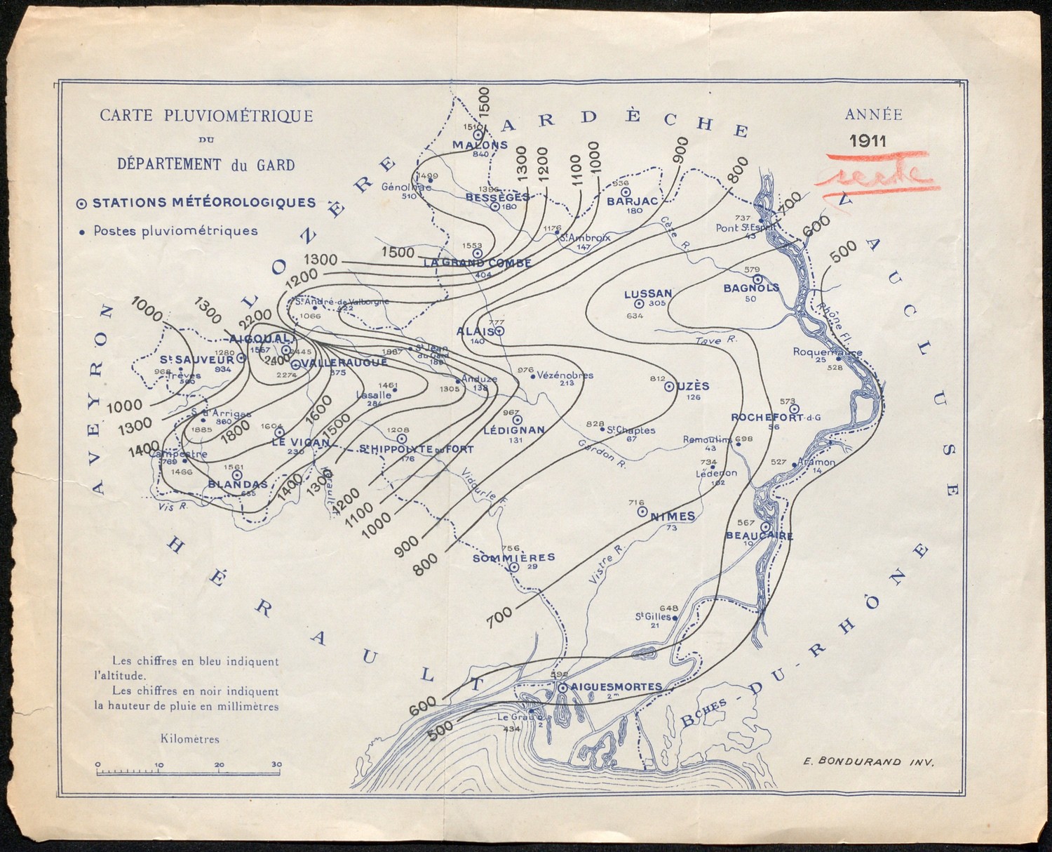 Le Gard, de par sa situation géographique est soumis aux caprices du climat. En effet, les épisodes cévenols ou méditerranéens sont fréquents en période automnale. Ils se caractérisent par l'accumulation de masses nuageuses en provenance du golfe du Lion, souvent dans un régime de vents de sud à sud-est très humides. Un épisode cévenol se déroule normalement sur plusieurs jours et donne en moyenne des quantités d'eau comprises entre 200 et 400 mm pouvant atteindre 600 voire 700 mm de précipitations au cours d'épisodes vraiment intenses.