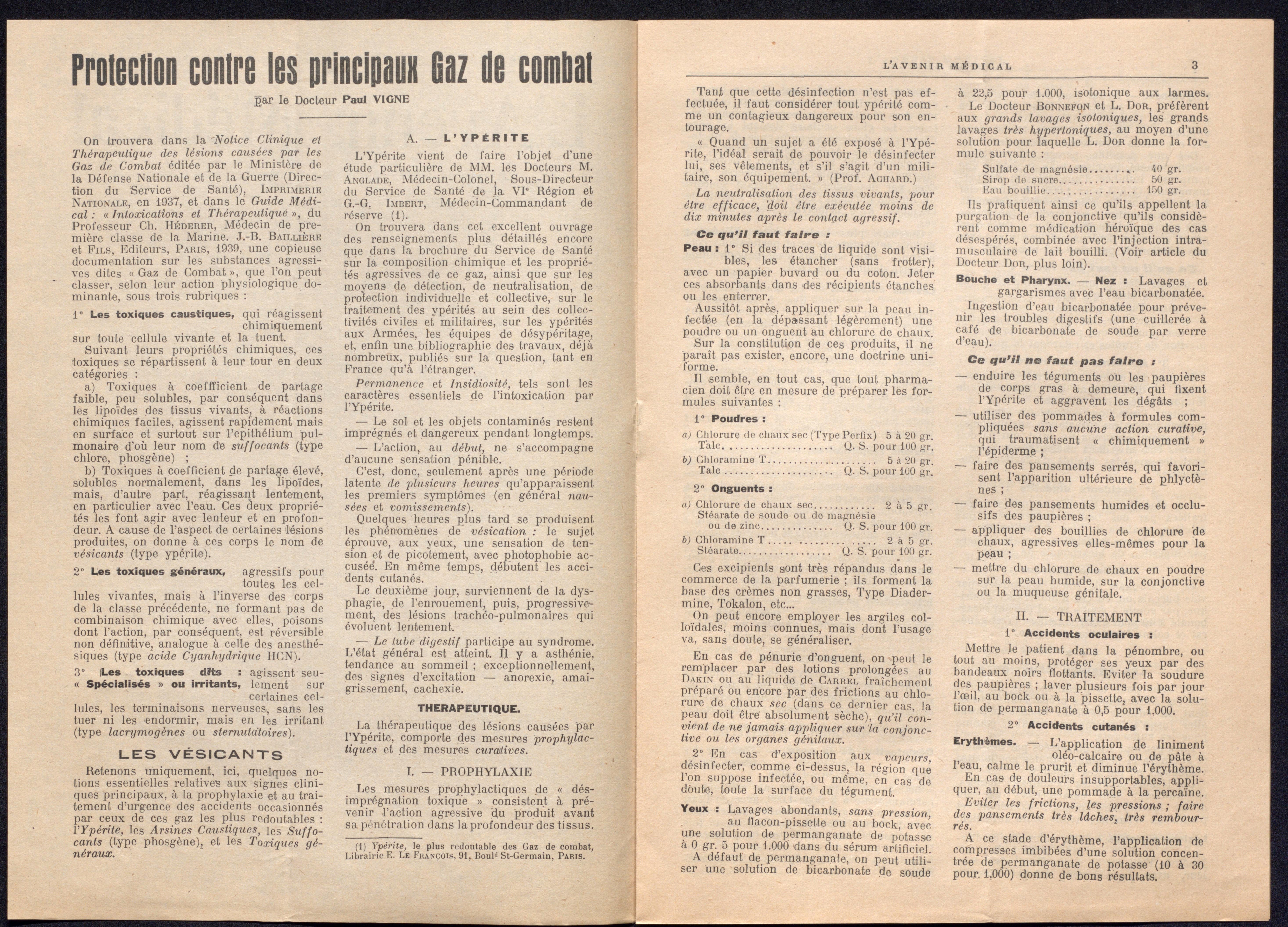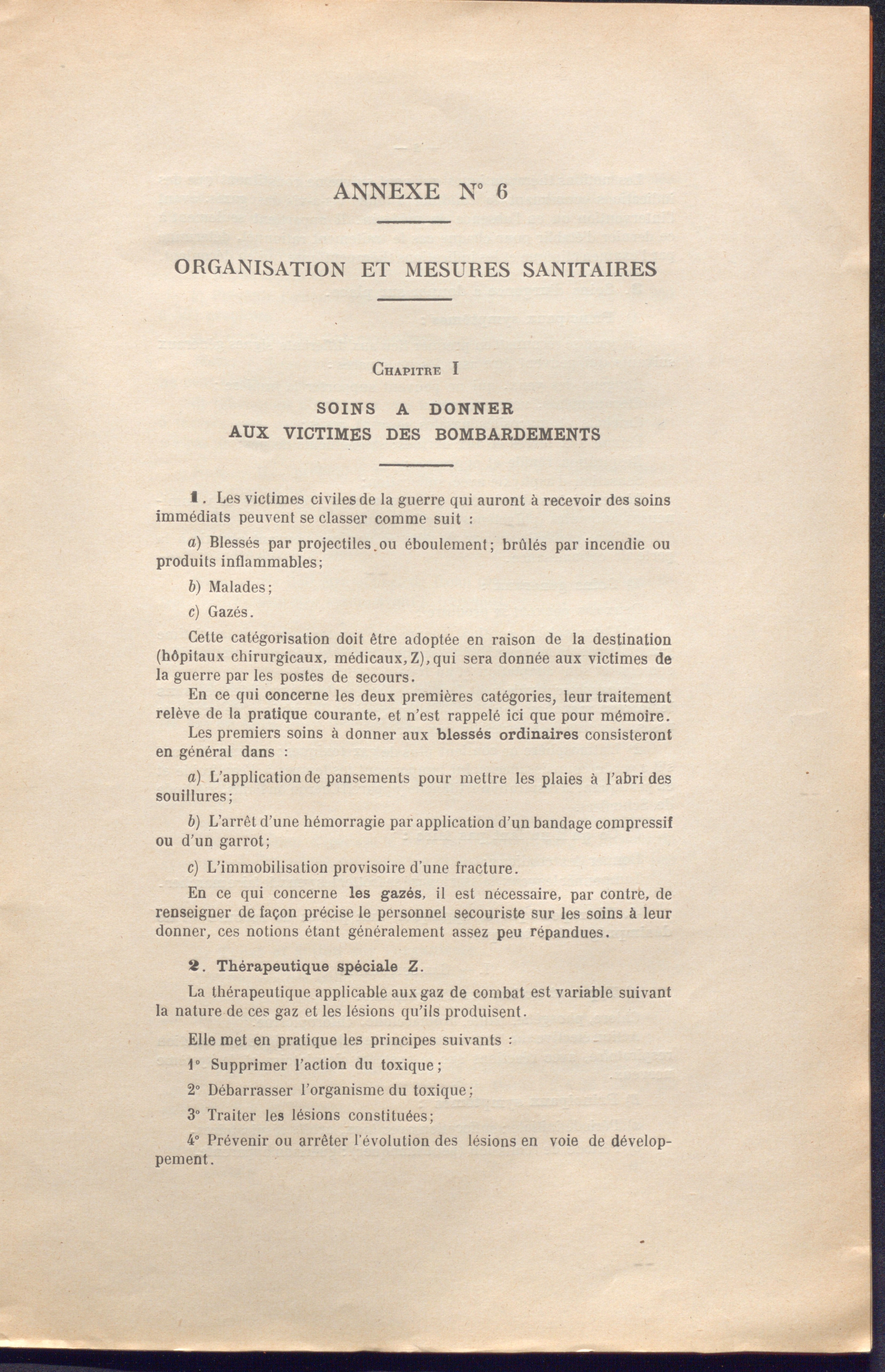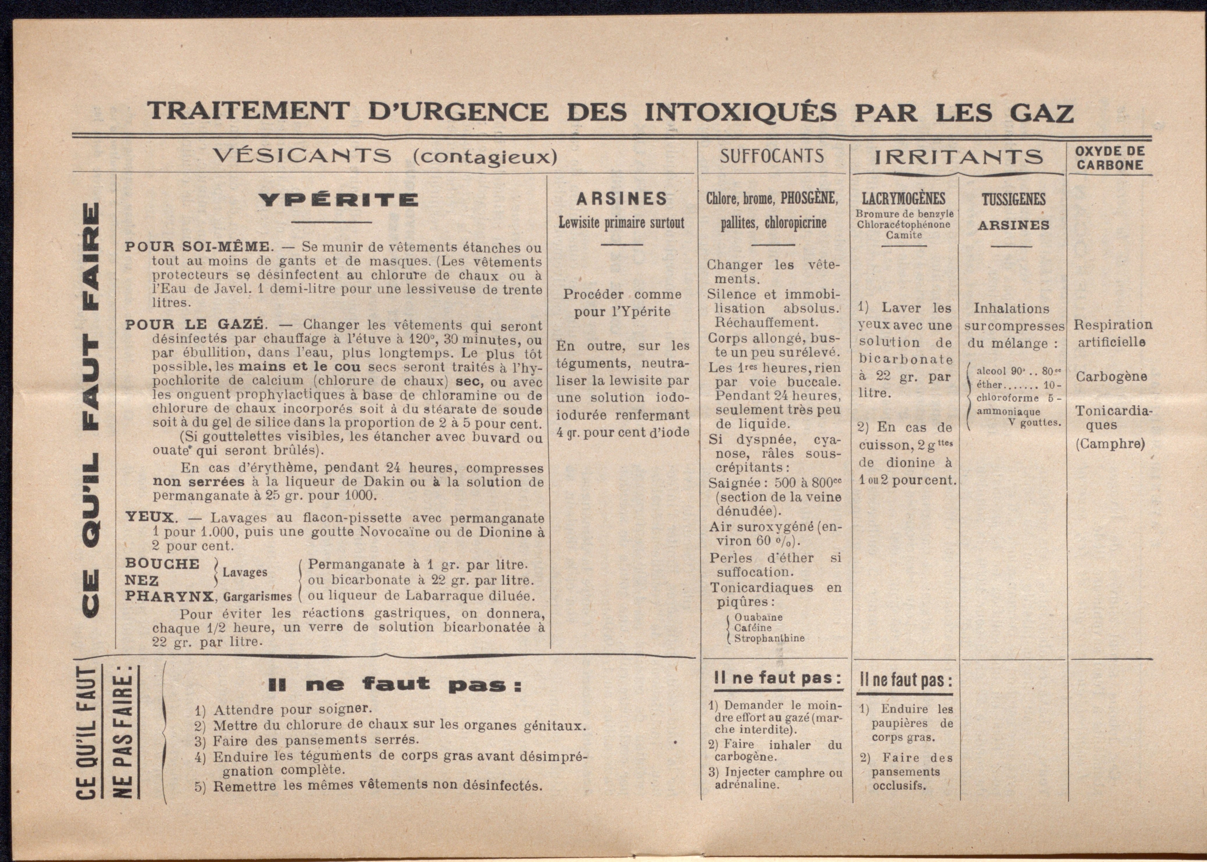 - les postes de lavage en charge de la désintoxication des victimes de bombardements par gaz avec un chef de poste, 5 agents et plusieurs employés ;