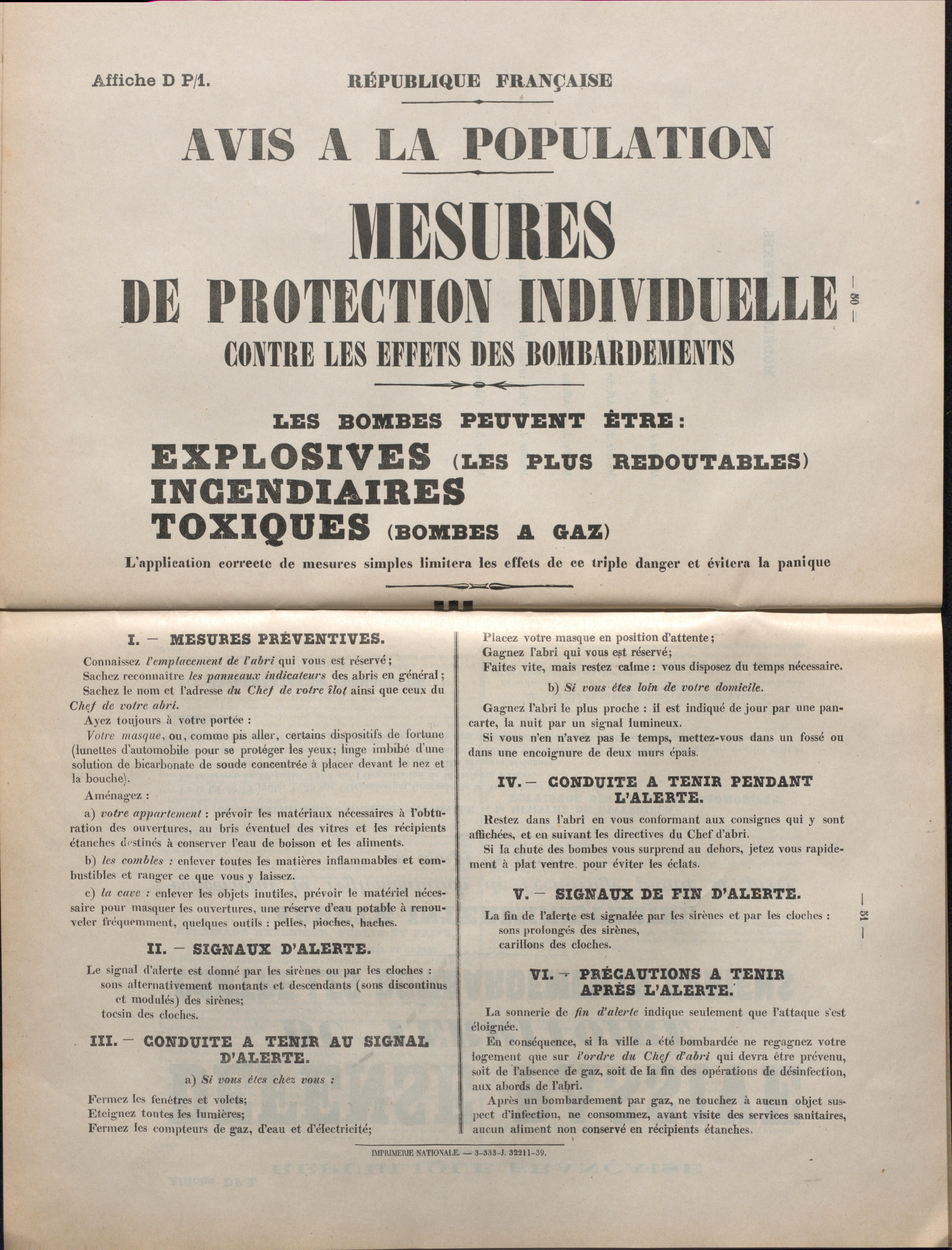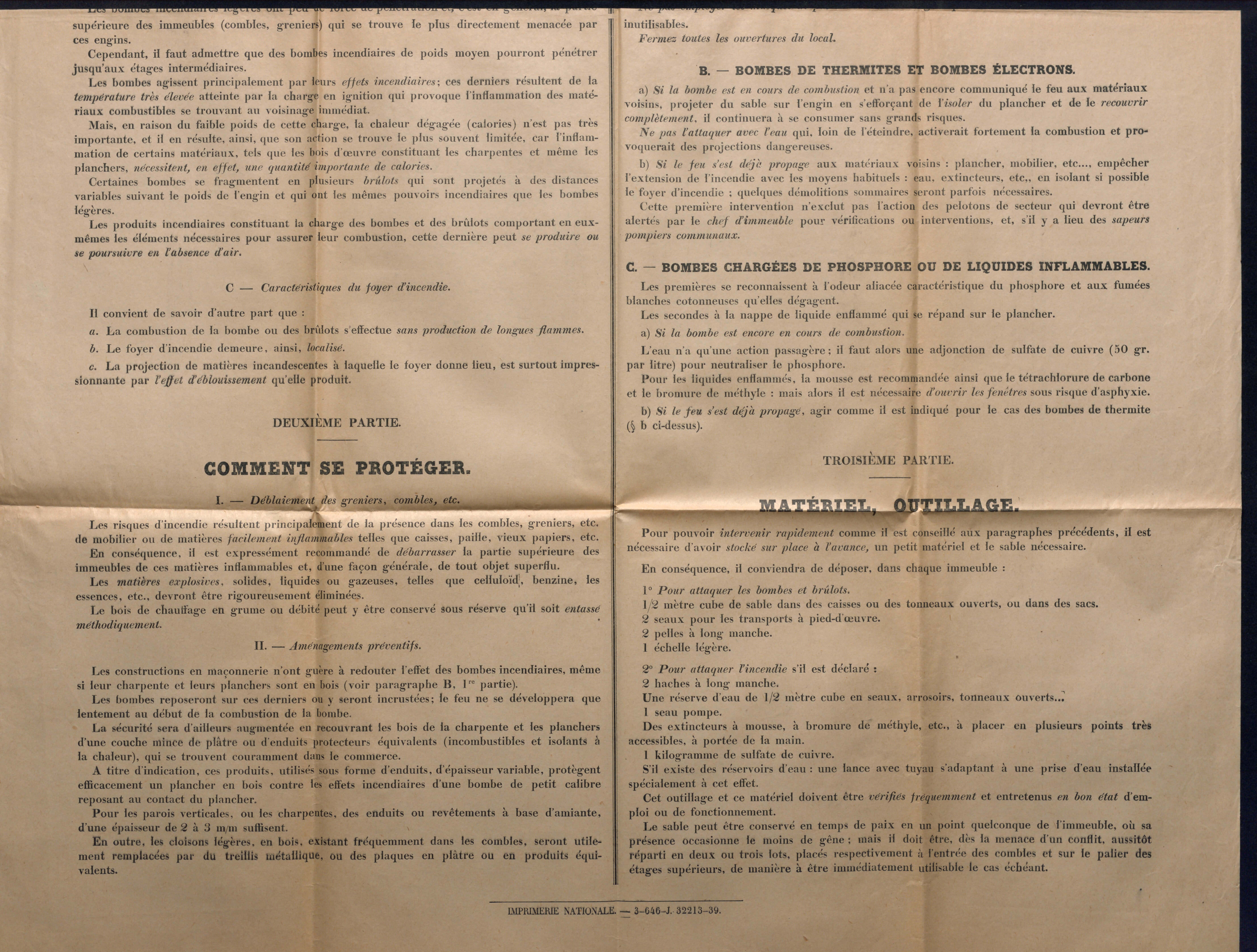 Nous conservons dans l’article 1 M 881 une petite brochure d’information destinée aux civils pour leur indiquer la marche à suivre en cas d’attaques aériennes.