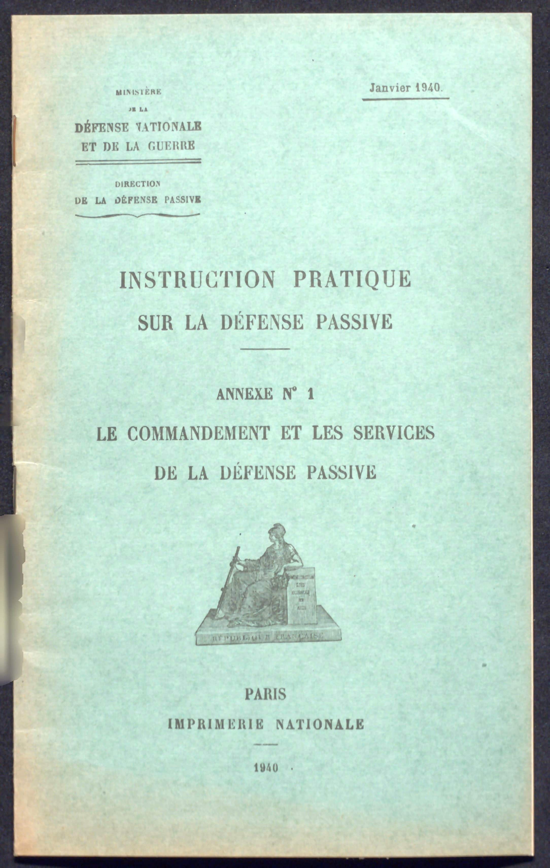 La notion de défense passive voit le jour au début des années 1930, à la veille de la Seconde Guerre mondiale. Mais ce n’est qu’à partir de la parution de la notice du 31 mars 1938 sur l’organisation et le fonctionnement des services sanitaires en matière de défense passive que le terme est véritablement employé.
