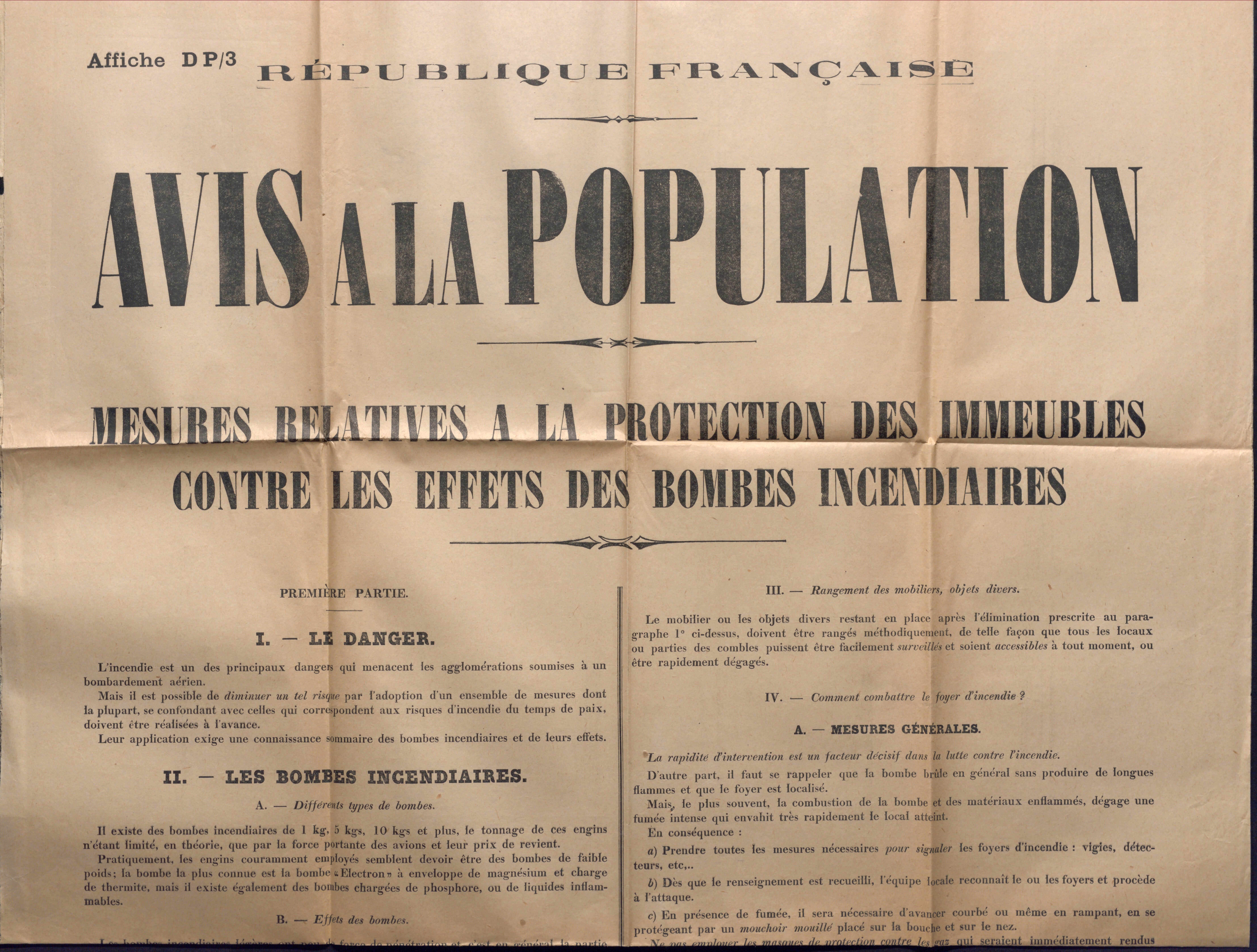La défense passive consiste en temps de guerre à limiter les risques encourus par la population lors de bombardements.