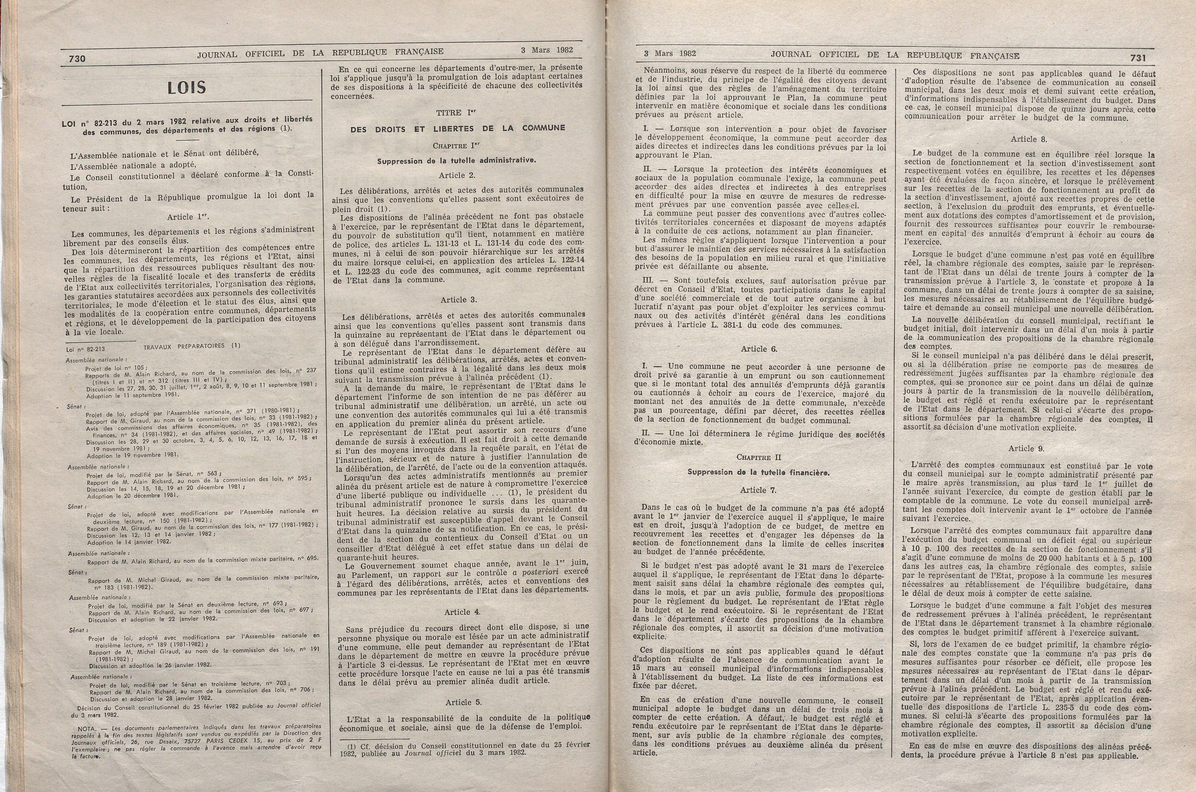 Grâce aux lois de décentralisation, dites lois Defferre, de 1982 et 1983, le département devient une collectivité territoriale de plein exercice.