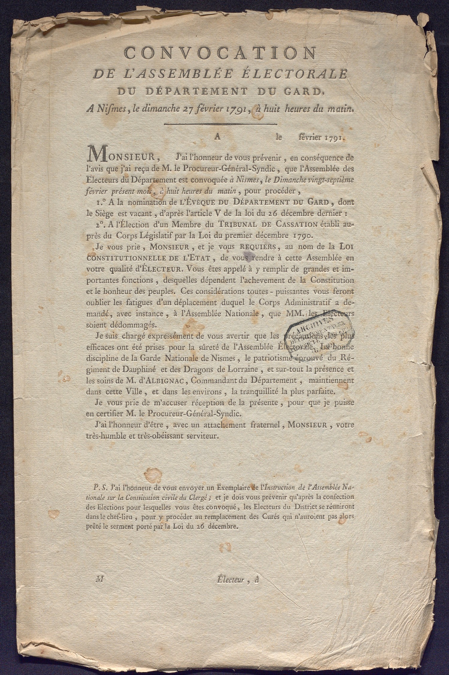 Afin d’unifier la nation et de rationaliser l’organisation administrative héritée de l’Ancien Régime, l’Assemblée constituante décide en 1790 de découper la France en 83 départements, organisés autour de chefs-lieux. Leur administration est confiée à un conseil général dont les membres sont désignés par le pouvoir central.