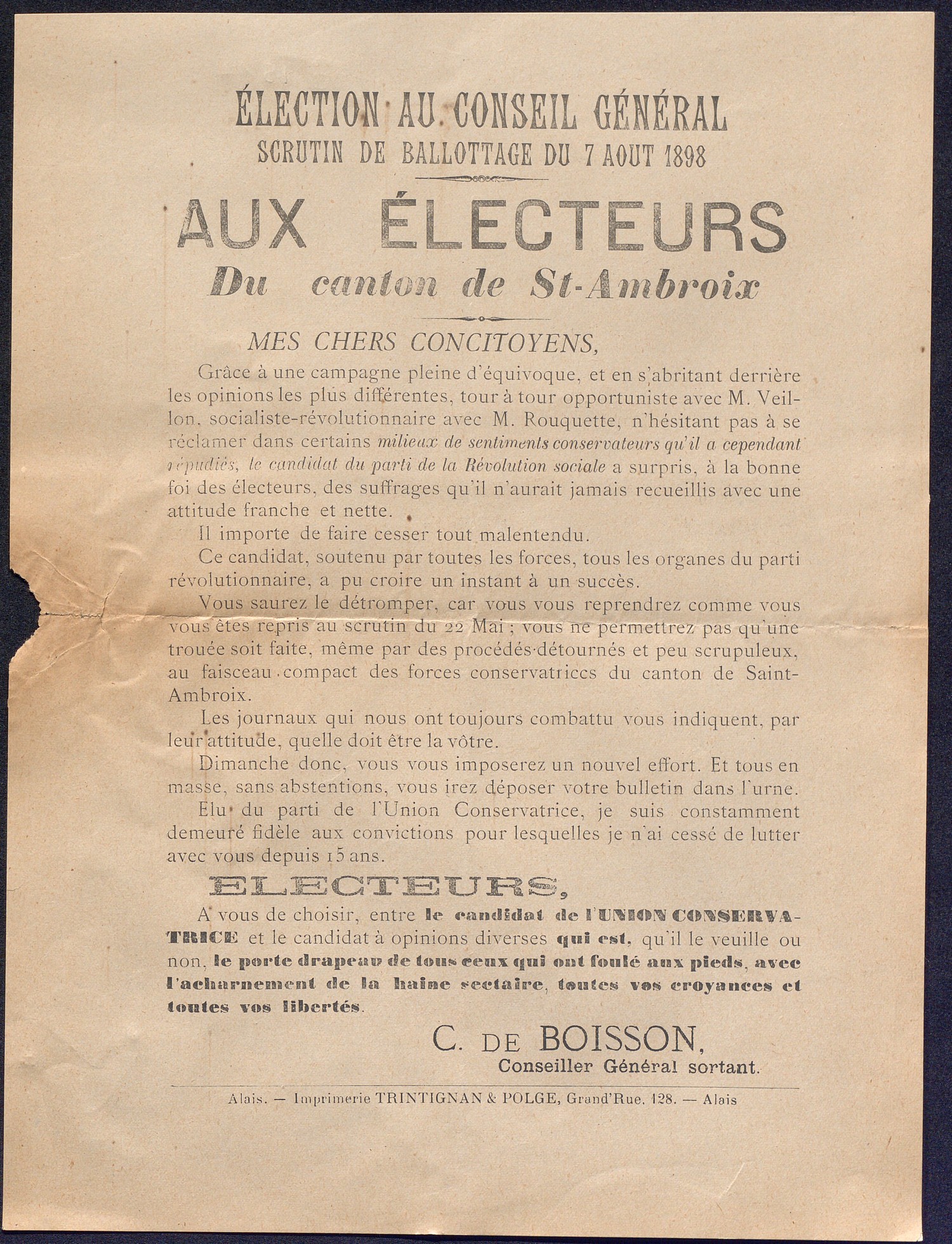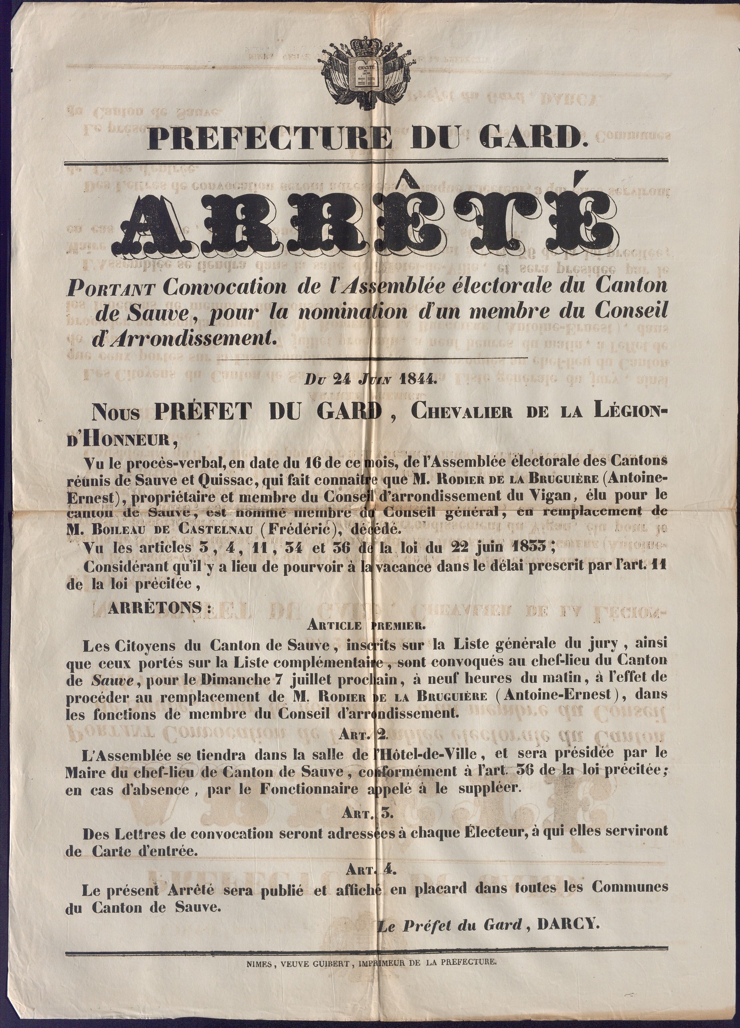 Le 3 juillet 1848, la IIe République instaure l’élection des conseillers généraux au suffrage universel, à raison d’un élu par canton. Le département devient une collectivité territoriale de plein droit et le conseil général reçoit une compétence générale pour régler les affaires d’intérêt départemental par la loi du 10 août 1871.