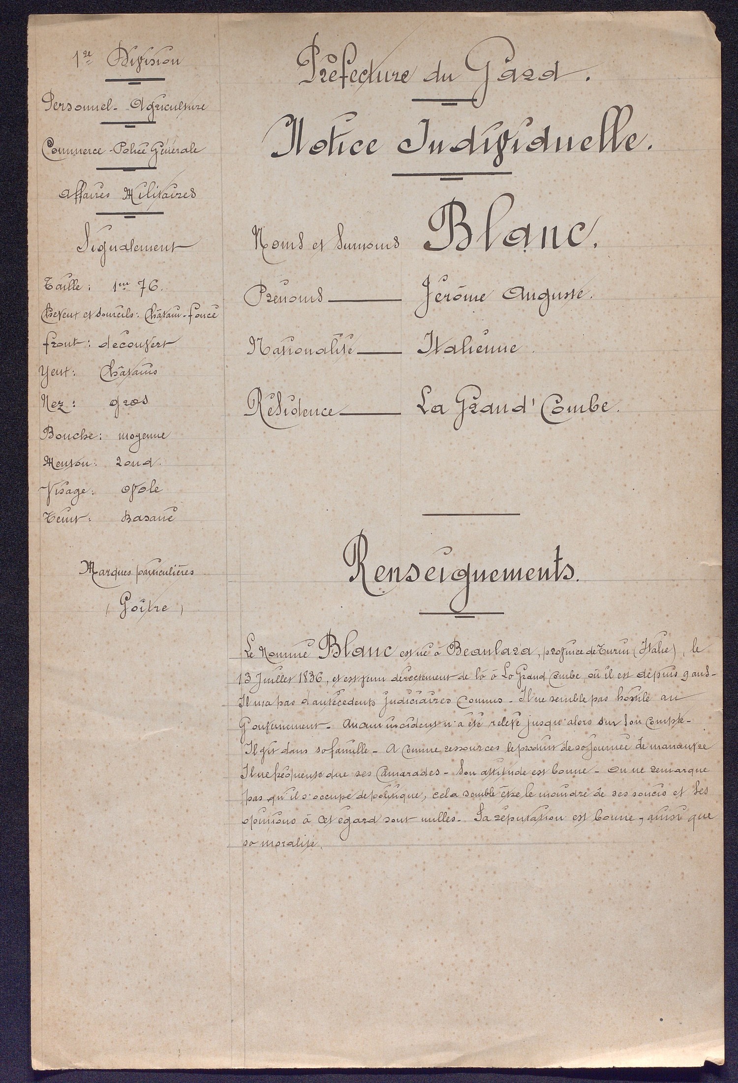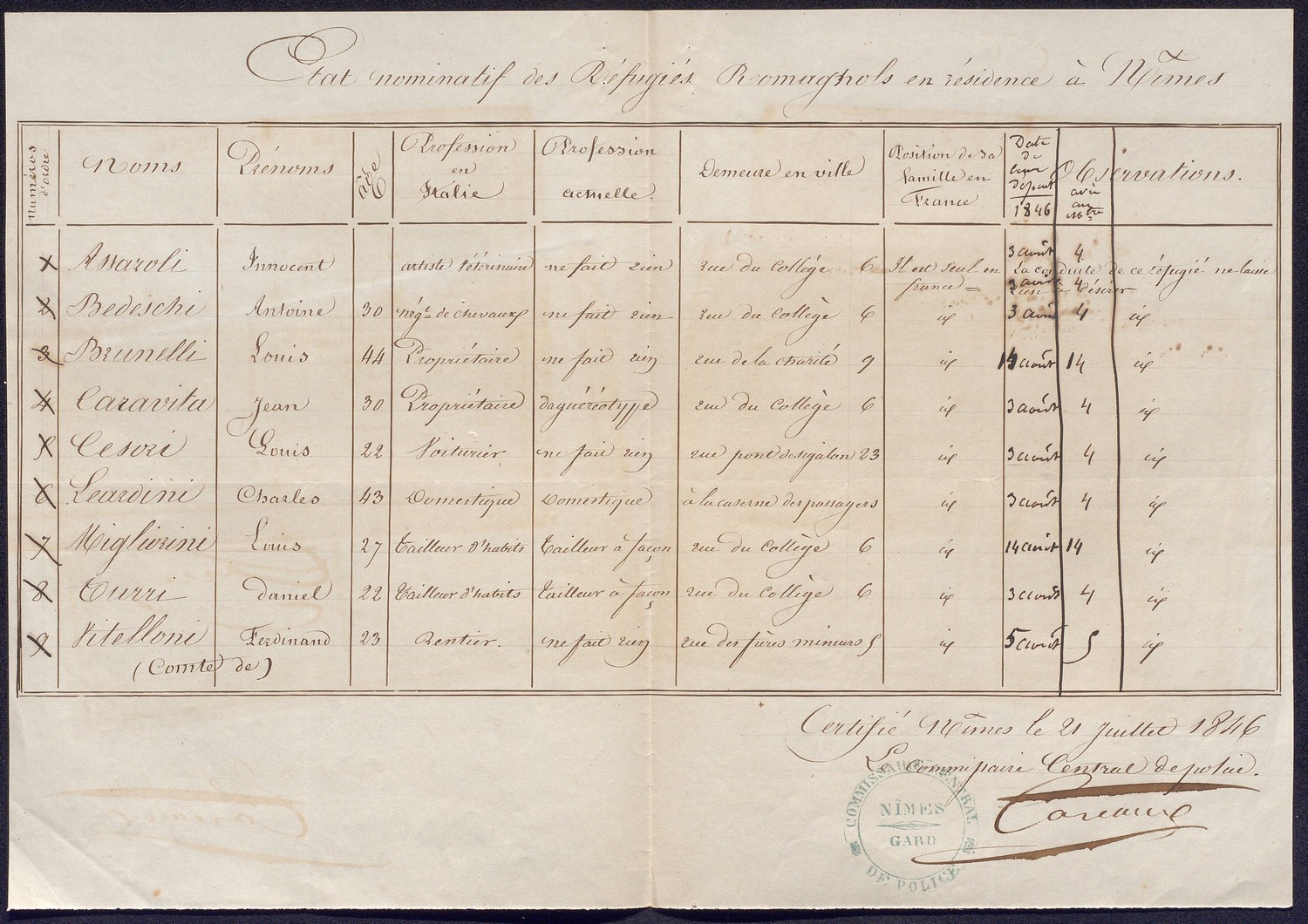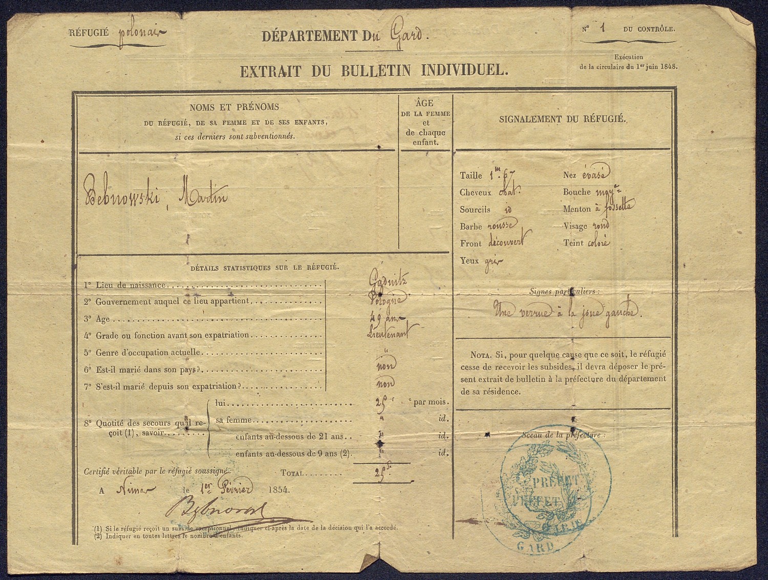 Le département du Gard devient ainsi au XIXe siècle un lieu de refuge pour les Polonais et les Italiens. On désigne sous le terme de « réfugié » ou « d’émigré politique », tous les étrangers qui ont quitté leur pays sous la contrainte politique, généralement sans autorisation.
