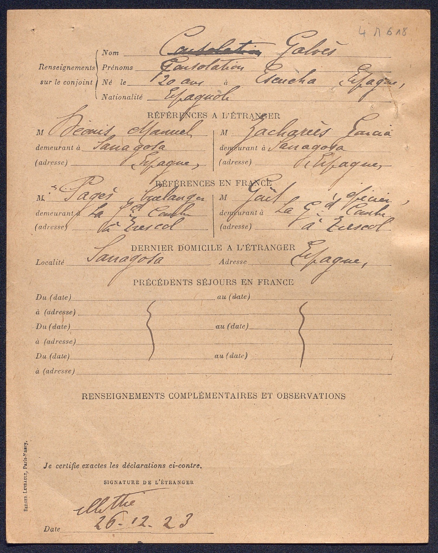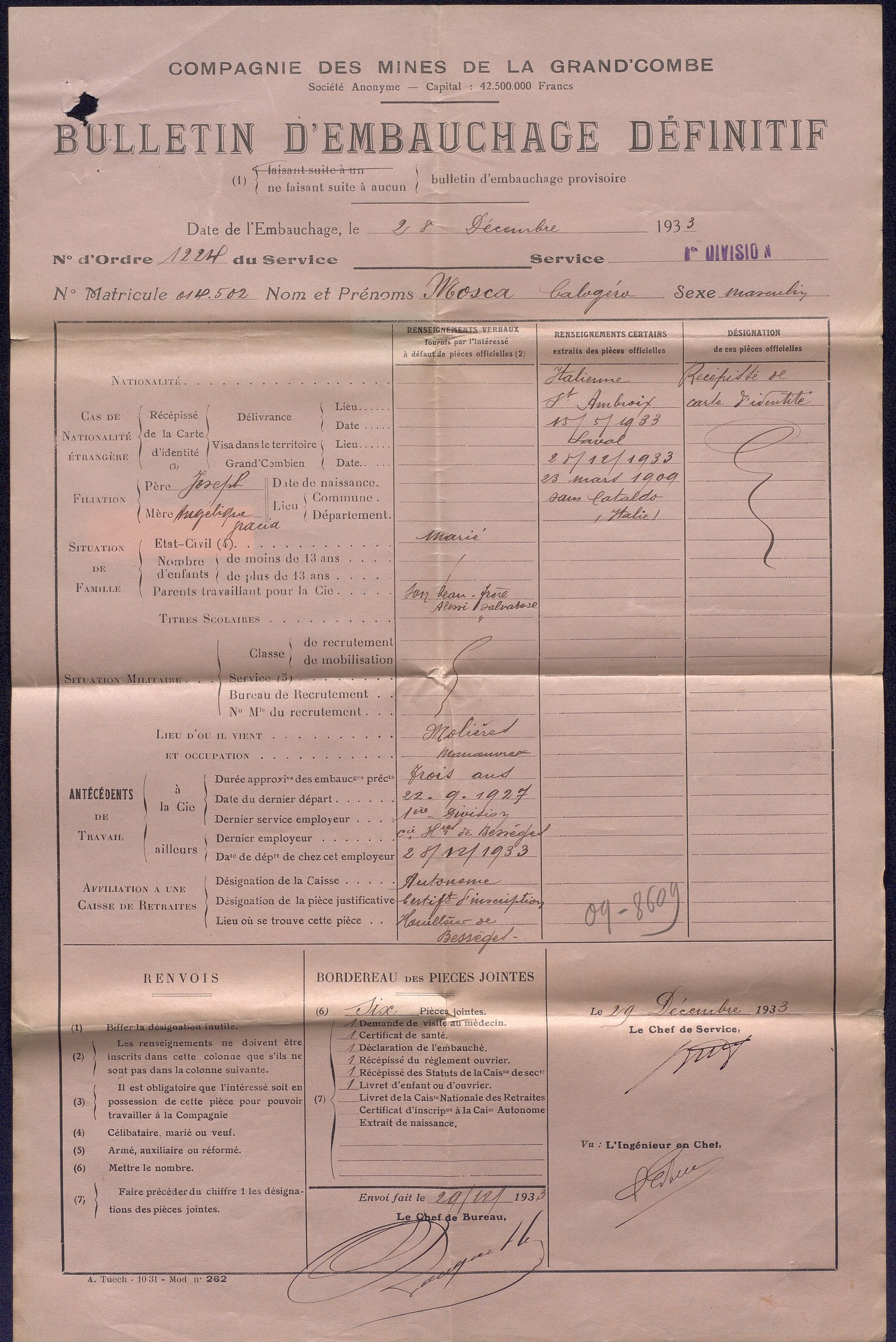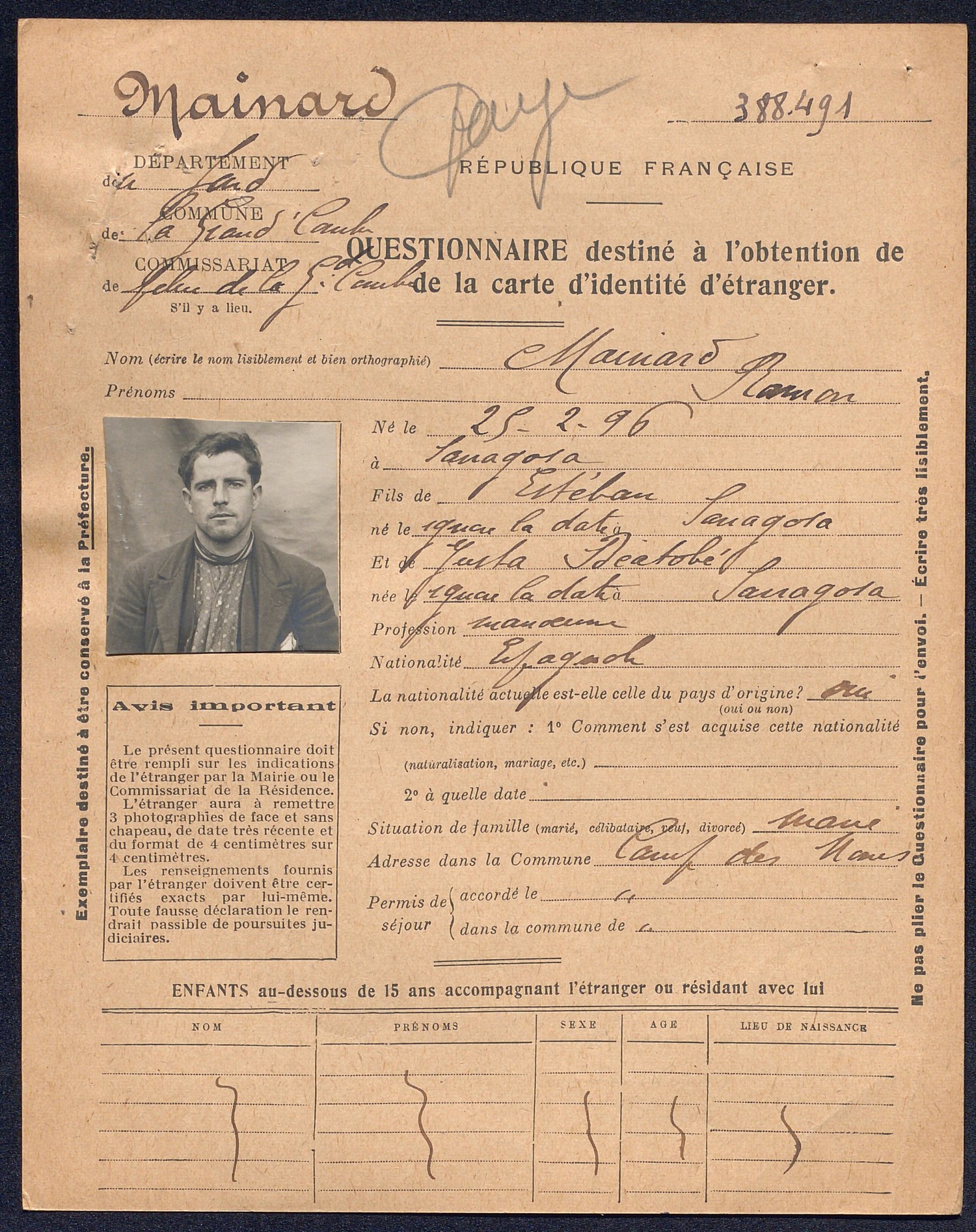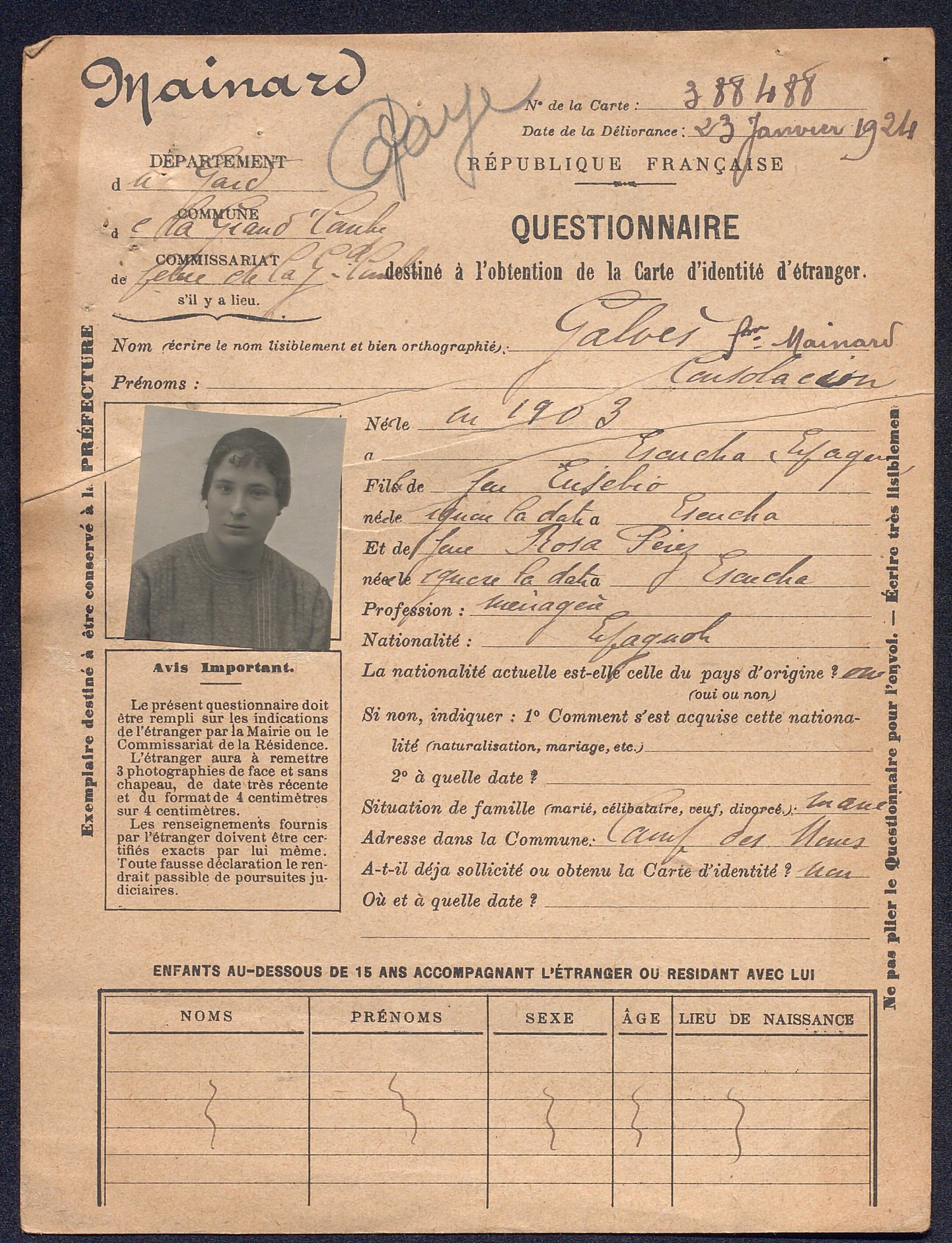 Si l’obtention de cette carte assure un statut juridique aux immigrés, ils doivent en retour s’acquitter du paiement d’un impôt spécial. Ce nouveau système d’identification permet en outres un enregistrement précis des informations personnelles de l’intéressé au niveau familial, professionnel et géographique. A partir de 1924, la durée de validité des cartes d’identité d’étrangers est fixée à deux ans.