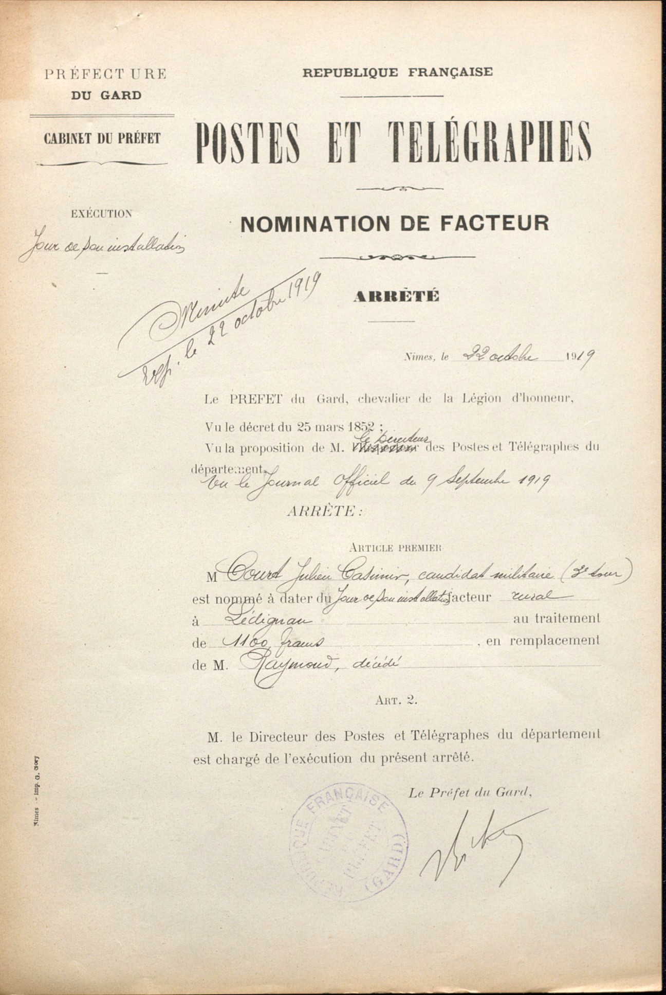 - 1897 : 94 communes sont équipées d’un poste télégraphique sur les 350 communes que compte le département du Gard.
