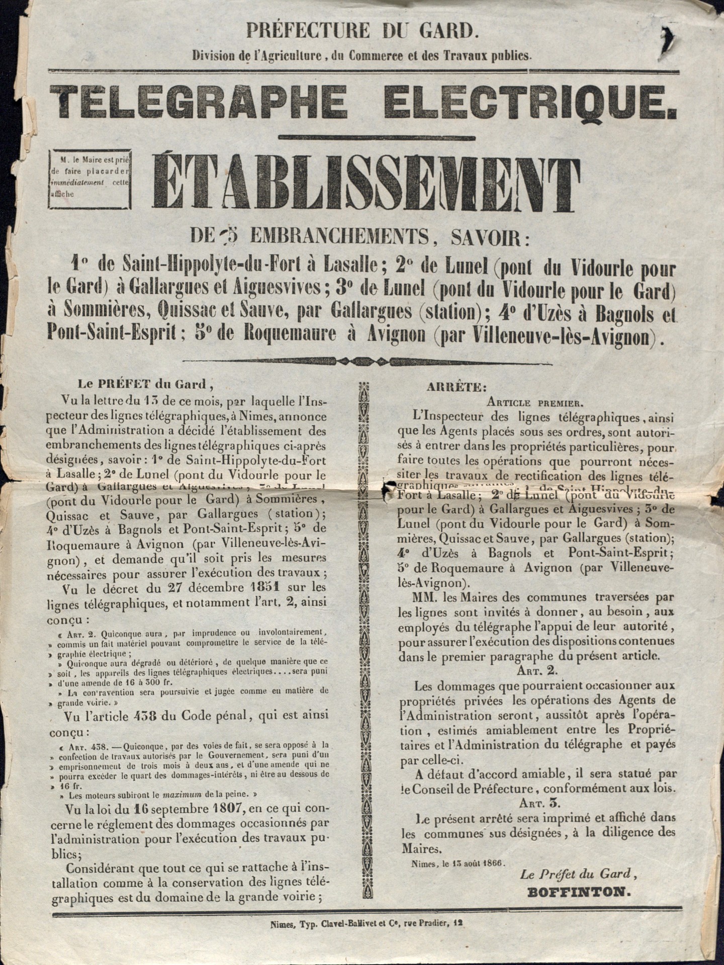 - 1831 : début des travaux pour établir une ligne télégraphique reliant Avignon à Montpellier en passant par Nîmes.