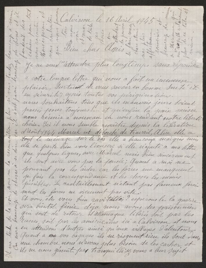 Correspondance entre la famille Arnaud de Calvisson et les Liebknecht réfugiés en Suisse (16 avril 1945)